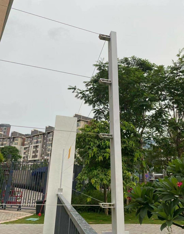 同时,周界安张力式电子围栏还具有自动紧线功能,让张力式电子围栏时刻处在警戒值内。为学校安全提供了一份强有力的保障。